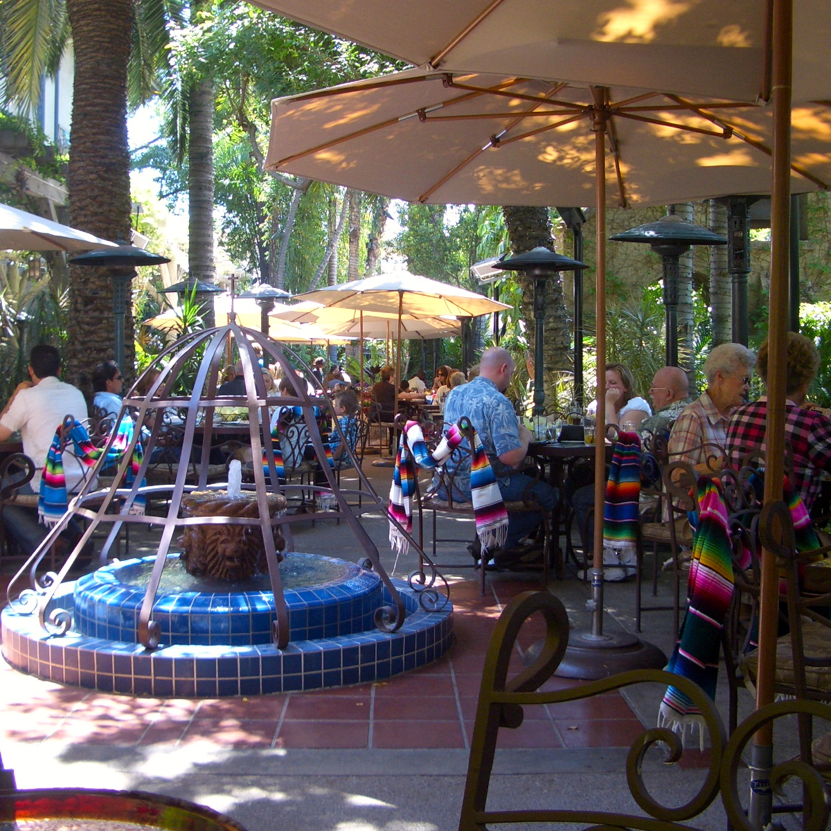 When we visit The Mission Inn, we usually head straight for Las Campanas Mexican Restaurant, located outside on the terrace and surrounded by lush landscaping. The first thing we order is their delicious and very large margaritas! I like mine on the rocks……