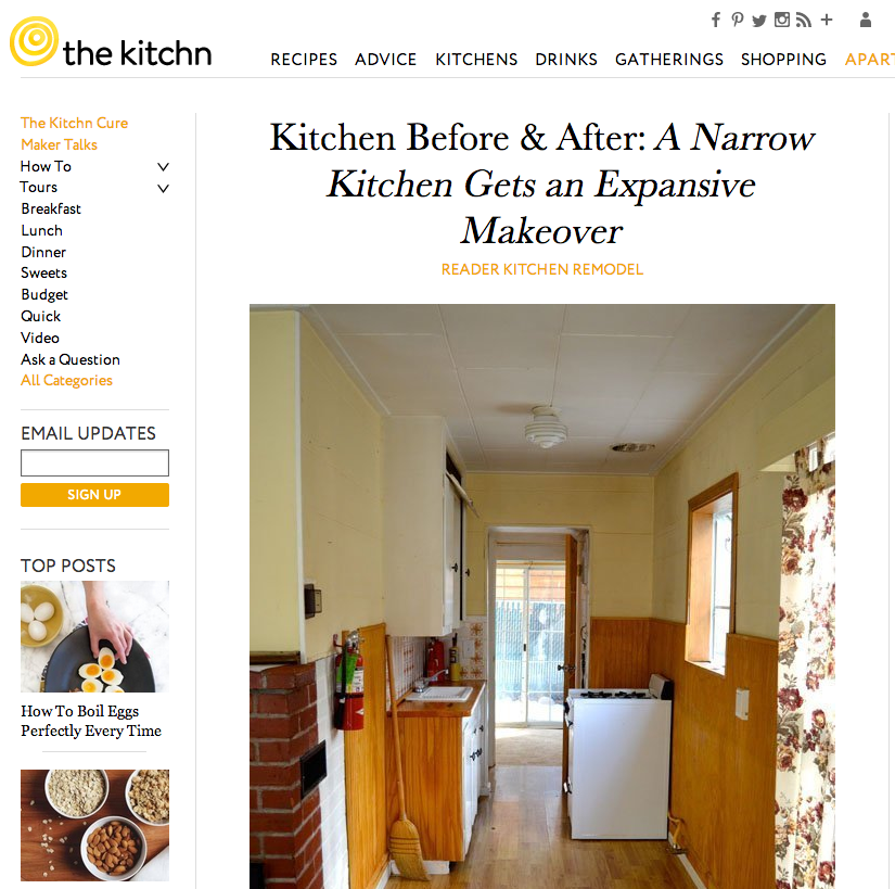 In fact, to say that it is an honor to be featured on The Kitchn is putting it mildly. That’s because The Kitchn is the creme de la creme of design publications. I’d say it is the Architectural Digest of the kitchen world, except that Architectural Digest, with its 4.3 million readers, can’t hold a candle to The Kitchn’s 11 MILLION READERSHIP! So, THANK YOU, THANK YOU to The Kitchn!!