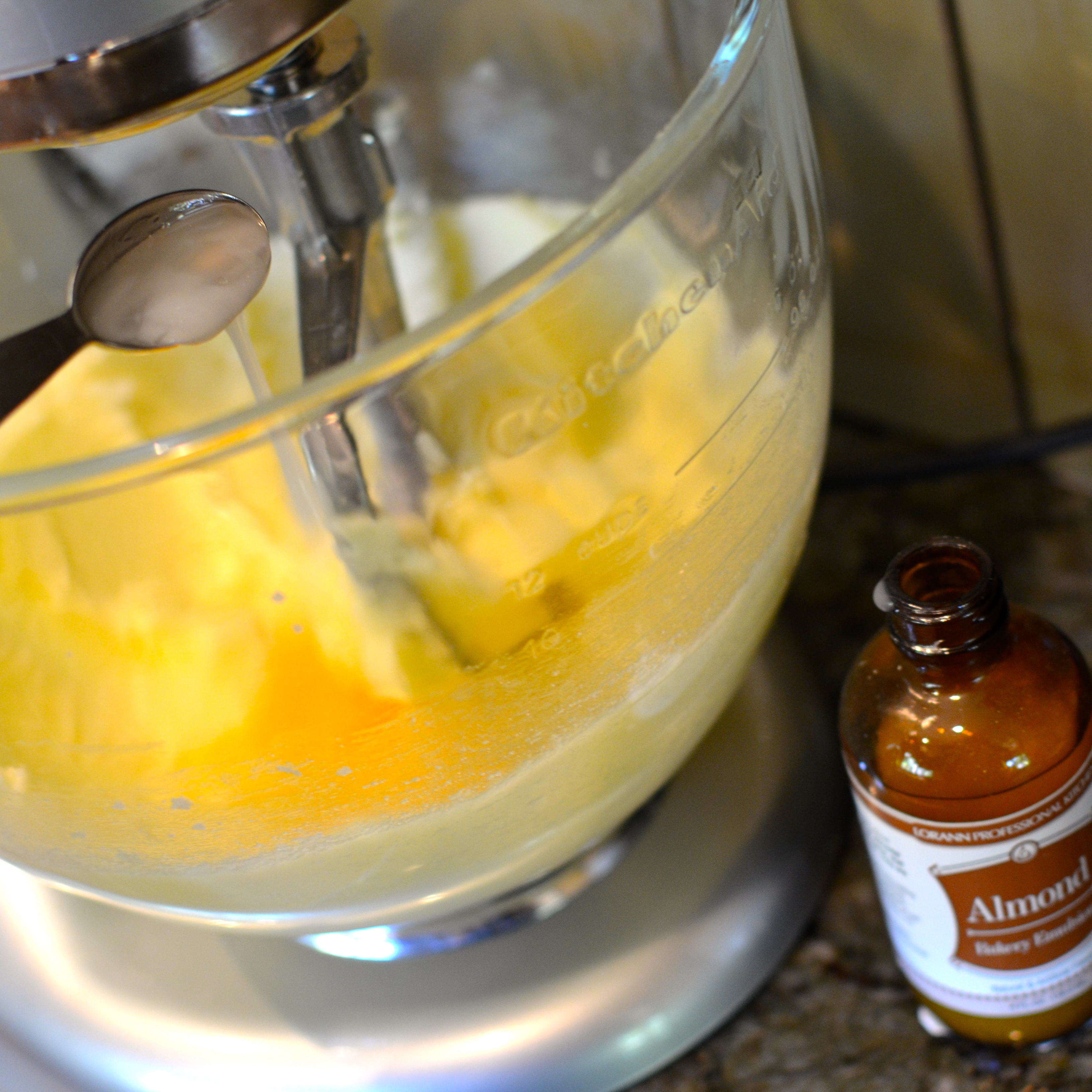 Finally, add 2 teaspoons of almond extract and continue beating until well blended. Almond extract is one of my favorite flavoring ingredients and gives these cookies a wonderful and distinct taste.