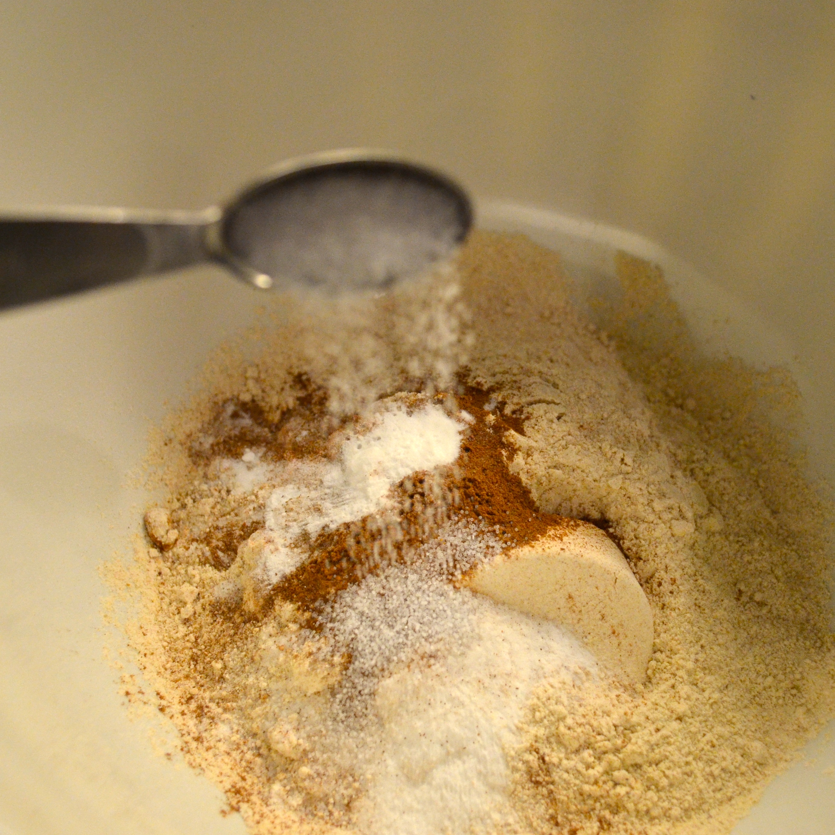 - In a small mixing bowl combine the flour, cinnamon, baking soda and salt.
