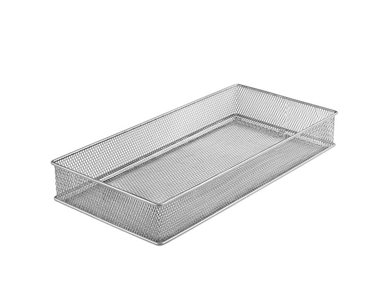 In the lower section of this area of my pantry I store a collection of tea, coffee and cocoa. I contain them in metal mesh organizer trays. Below the shelf of beverages are food storage containers, including the nifty Stasher. The Stasher is a silicone reusable food bag, like a reusable ziplock bag.